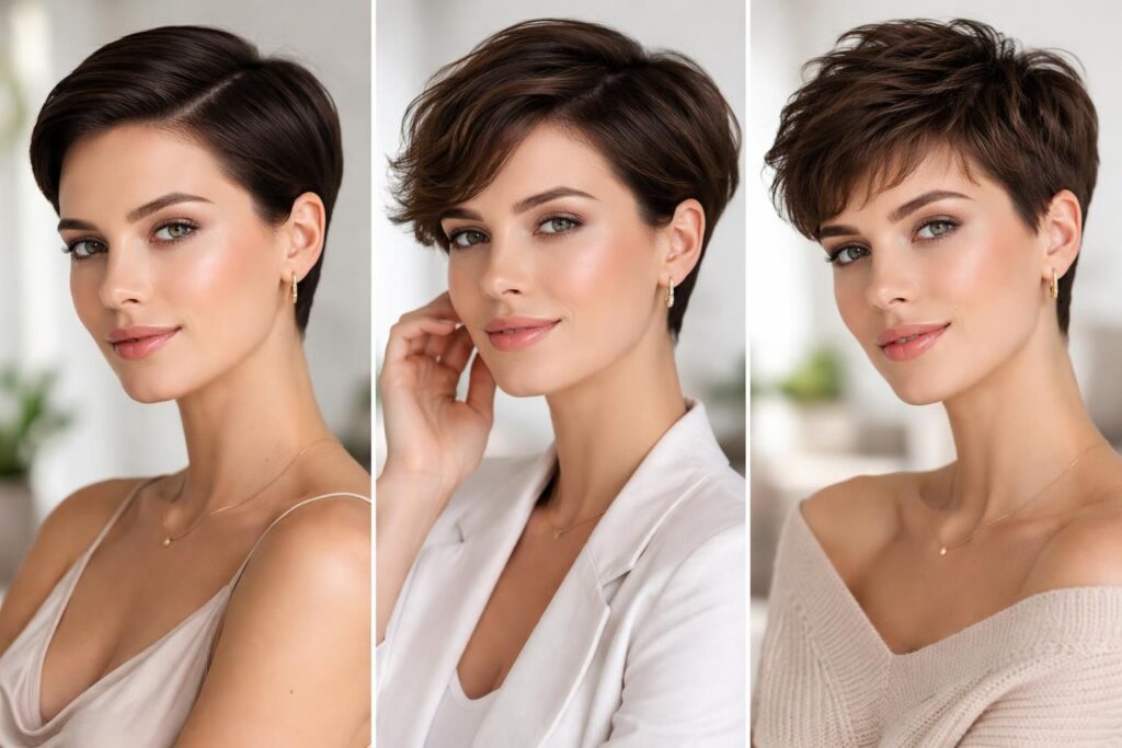 - Pixie effilé : Cette coiffure dynamique apporte du volume et de la texture, idéale pour celles qui aiment un style affirmé. Un léger coiffage à la crème texturante peut inauguré un look chic désordonné.